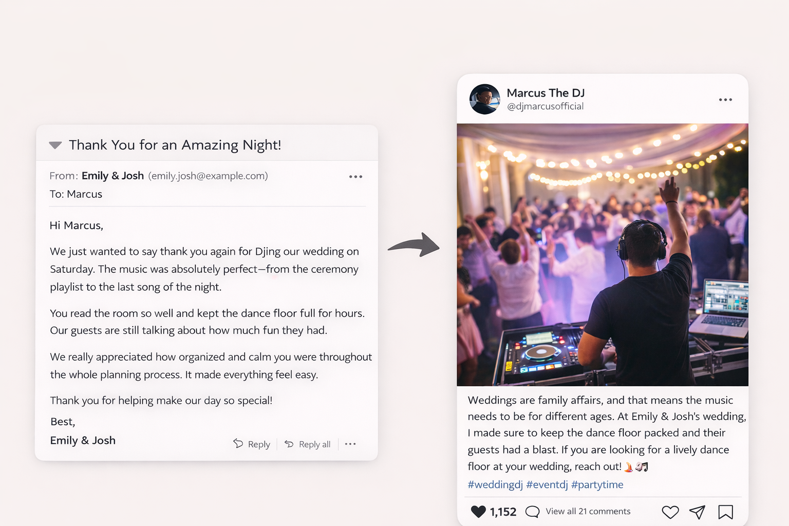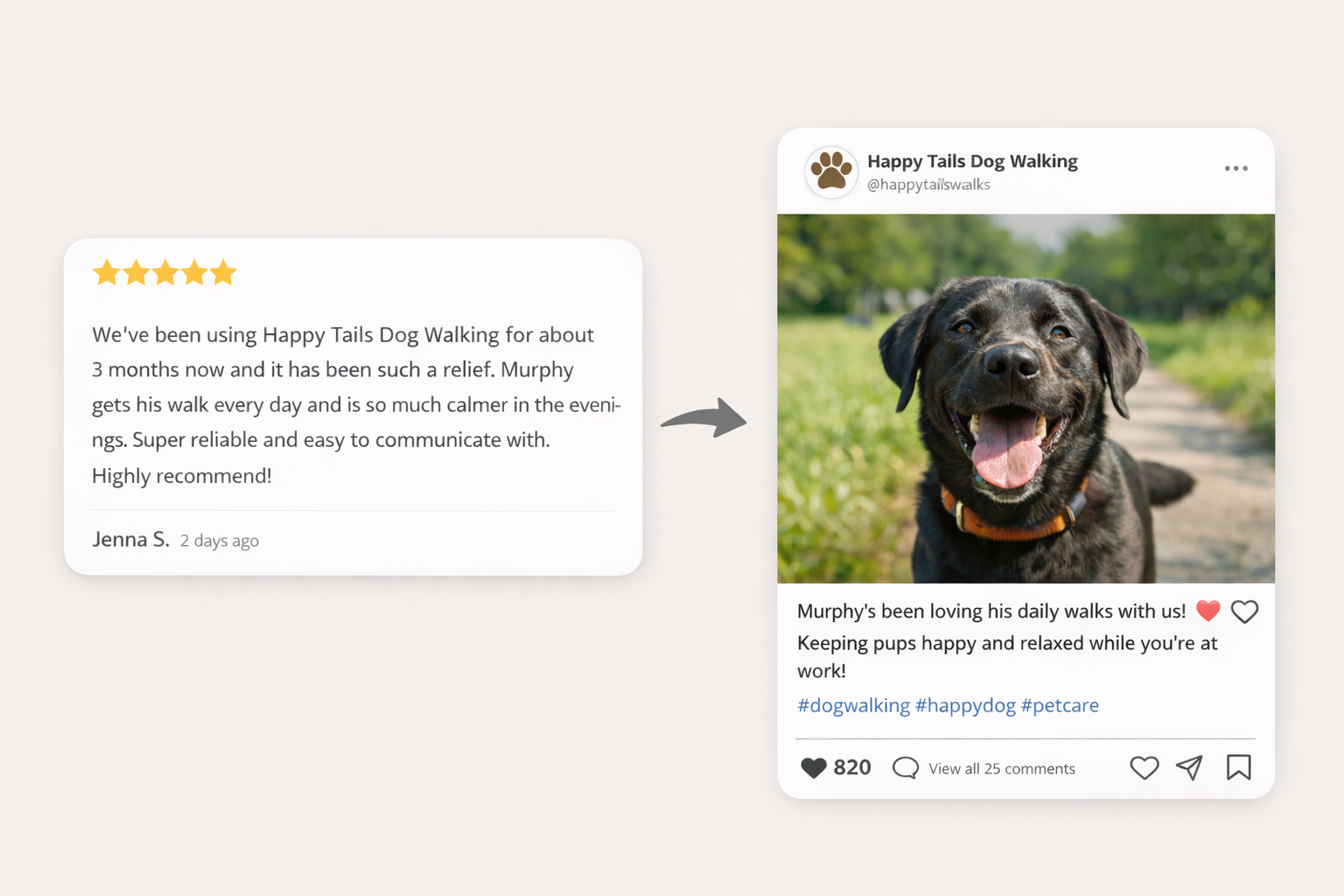 Turn customer reviews into social proof posts.