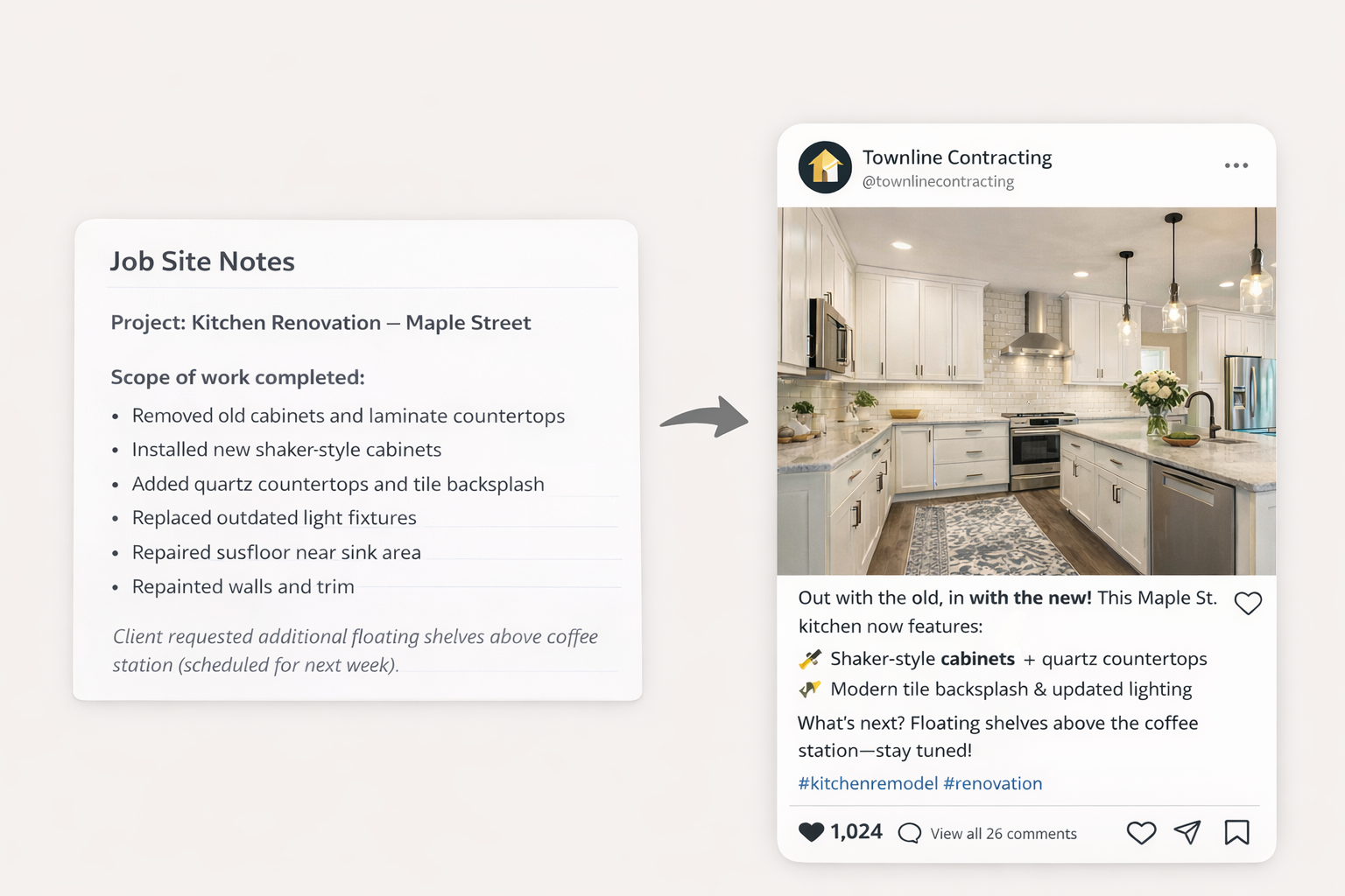 Turn job notes into post drafts.